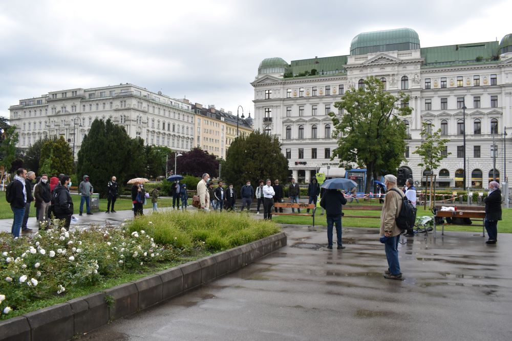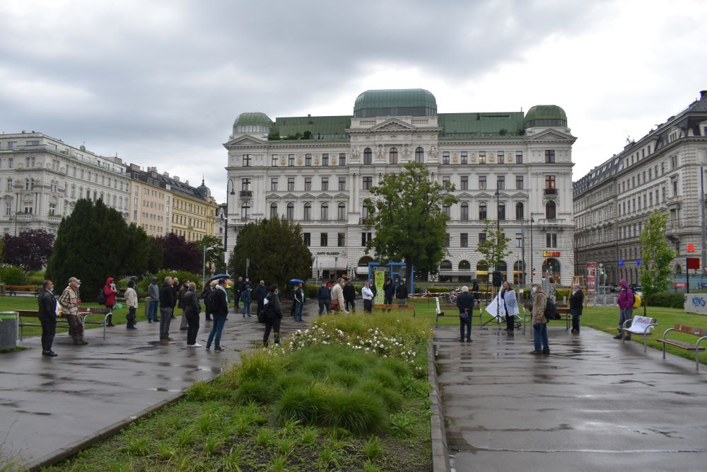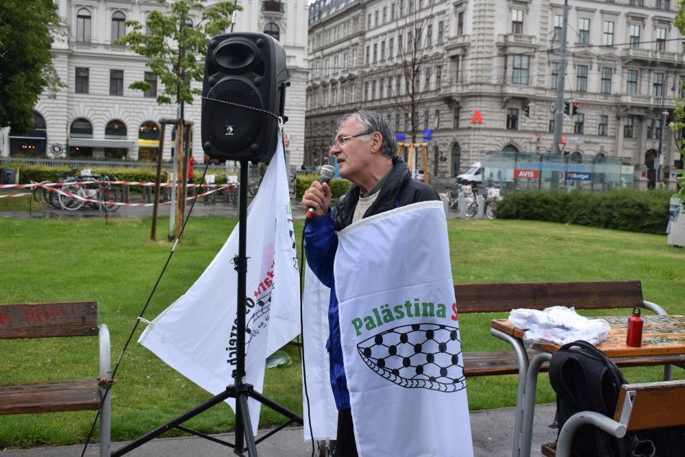 Das Aktionsplenum der Palästinasolidarität am 29. Mai 2020 wurde trotz Regens zu einer richtiggehenden Kundgebung gegen die Unterstützung der Regierung Kurz für die völkerrechtswidrige Besatzungs- und Annexionspolitik Israel.