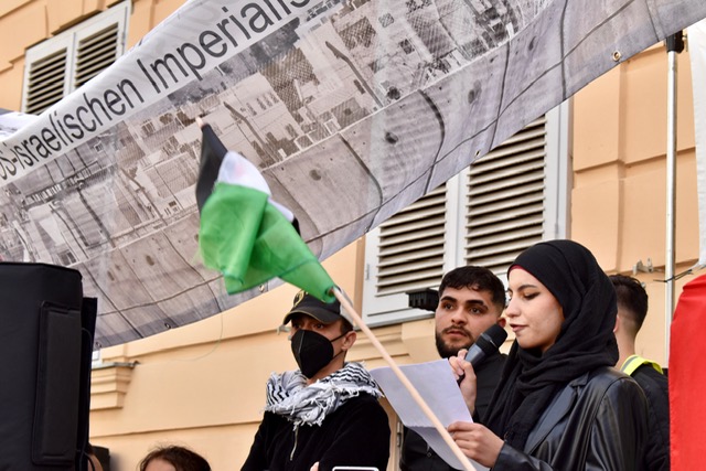 Wenn diese Nacht in Palästina eine Familie wieder ihres Hauses beraubt wird, wenn diese Nacht in Jerusalem wieder Pogrome stattfinden, wenn diese Nacht Sheikh Jarrah wieder brennt und wenn diese Nacht wieder betende MuslimInnen in ihren Moscheen durch die israelische Besatzung angegriffen werden, so rufen wir zynisch wieder: „nie wieder“.