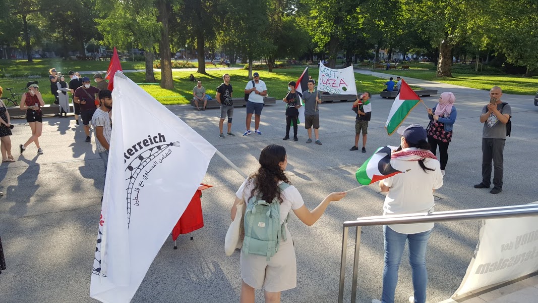 Palästina Solidarität Österreich fuhr am 6. Juli nach Linz, um gemeinsam mit der Antifa auf die Situation in Palästina aufmerksam zu machen. Zahlreiche Menschen solidarisierten sich mit uns und Palästina und informierten sich über die derzeitige Situation. Es gab einige AktivistInnen, die ihre Solidarität über eine öffentliche Rede kund getan hatten. Unsere Flugblätter und Aufkleber wurden außerdem zahlreich verteilt.