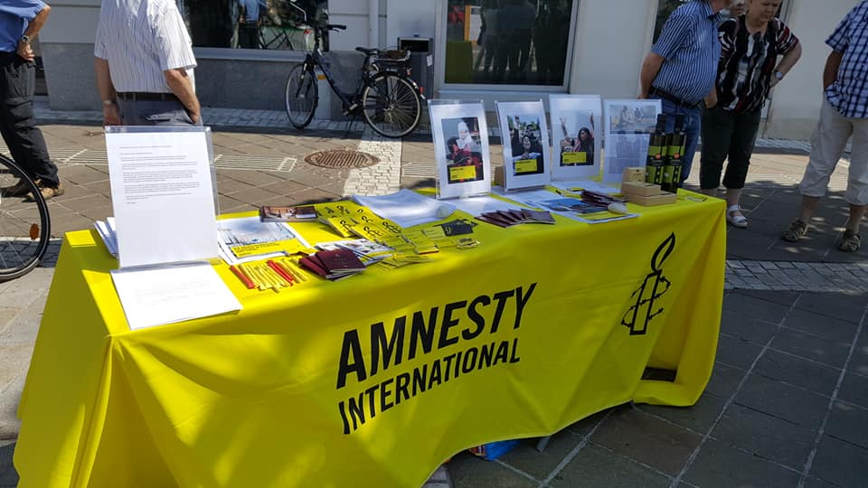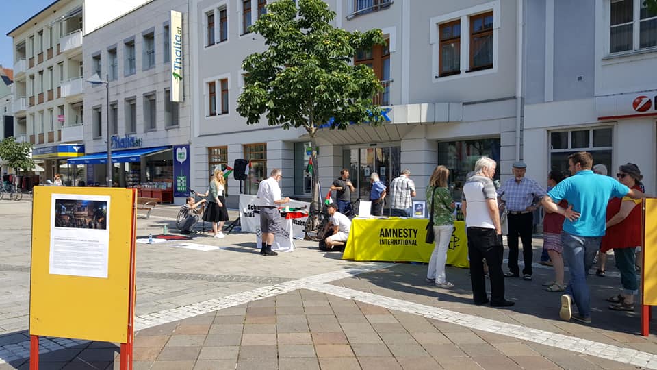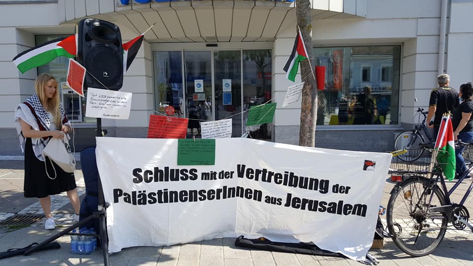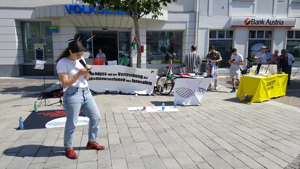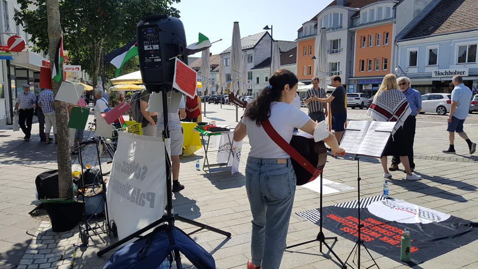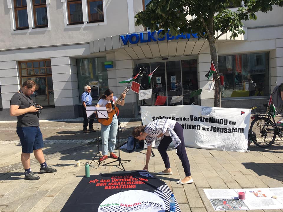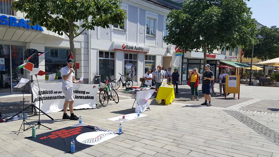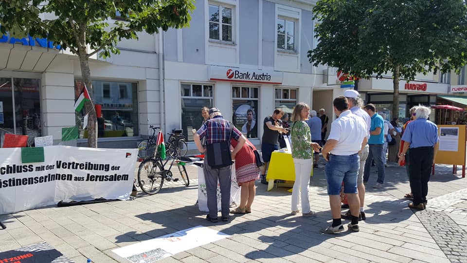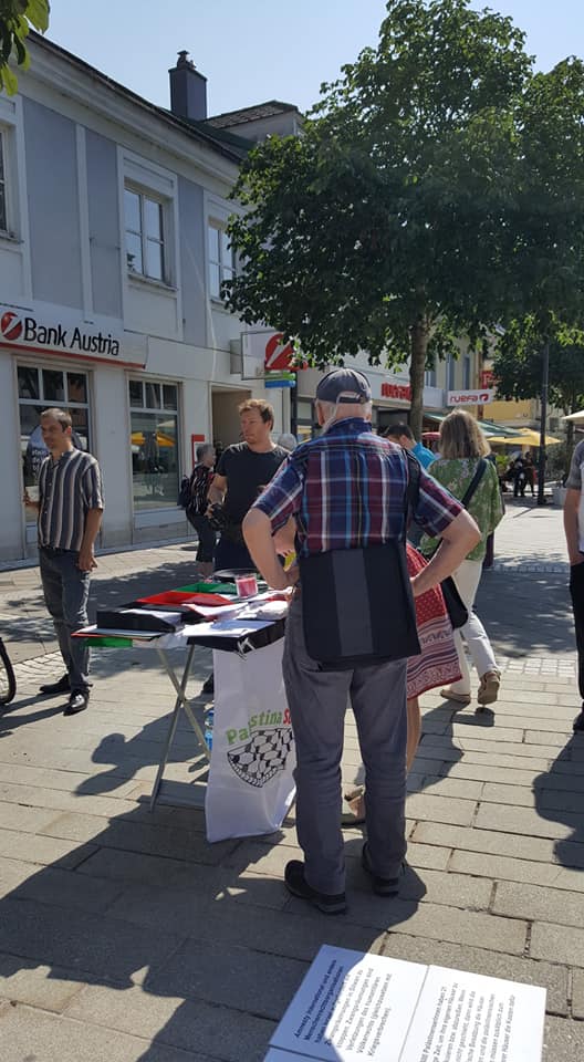 Gemeinsam haben wir heute mit Amnesty International und Pax Christi auf die koloniale Siedlungspolitik Israels aufmerksam gemacht. Viele Passant*innen haben in dem ansonsten an Julisamstagen verschlafenen Städtchen Amstetten ihre Aufmerksamkeit auf uns gerichtet, sich informiert und Flugblätter dankend und zustimmend entgegegen genommen. Es wurden außerdem sehr viele Unterschriften für unsere Petition "Nein zur Vertreibung der Palästinenser*innen" gesammelt.