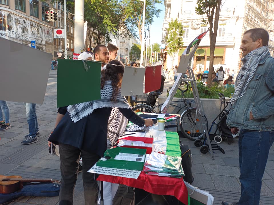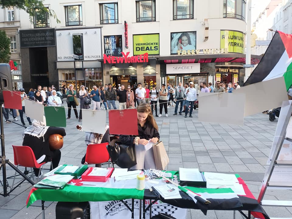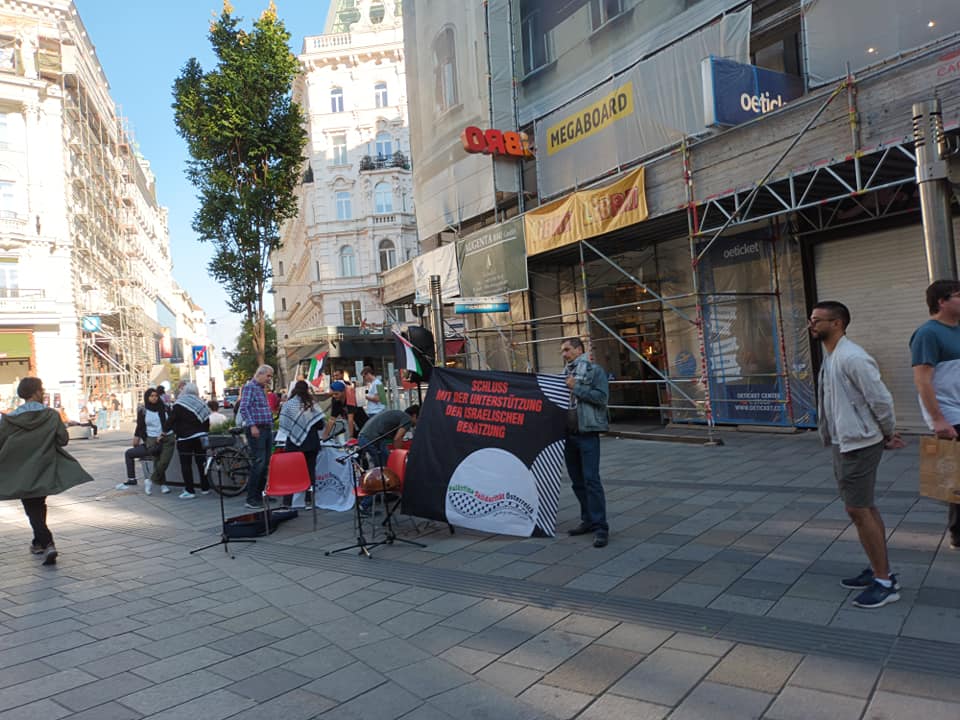 Die Solidarität mit den Palästinenserinnen und Palästinensern war gestern auf der Mariahilferstraße bei unserem Infotisch sehr gut spürbar. Wir haben etliche Unterschriften für unsere Petition gesammelt. Mayas Alkhatib habt außerdem mit ihrer wunderschönen Musikperformance für große Aufmerksamkeit gesorgt. Danke an alle die dabei waren, mitgewirkt haben, Interesse gezeigt haben und sich solidarisierten!
