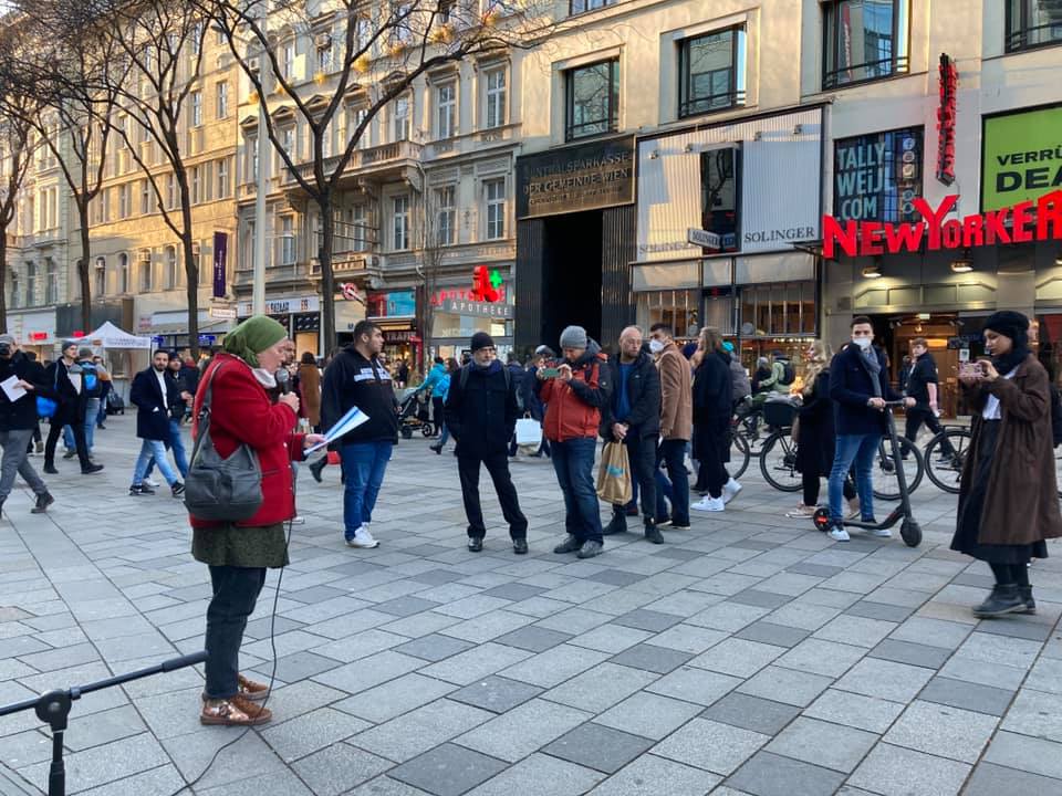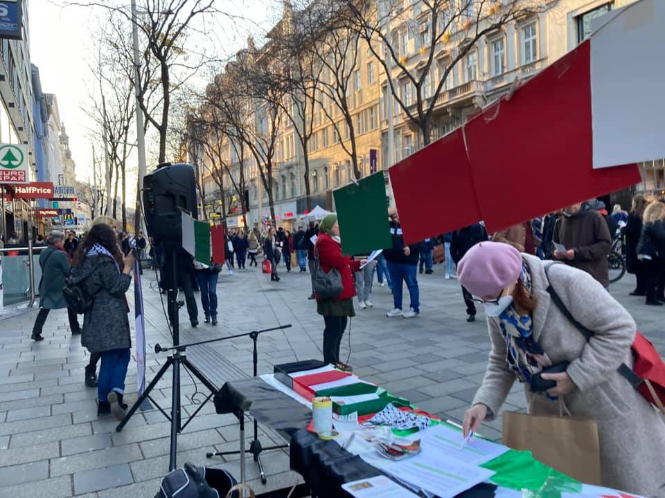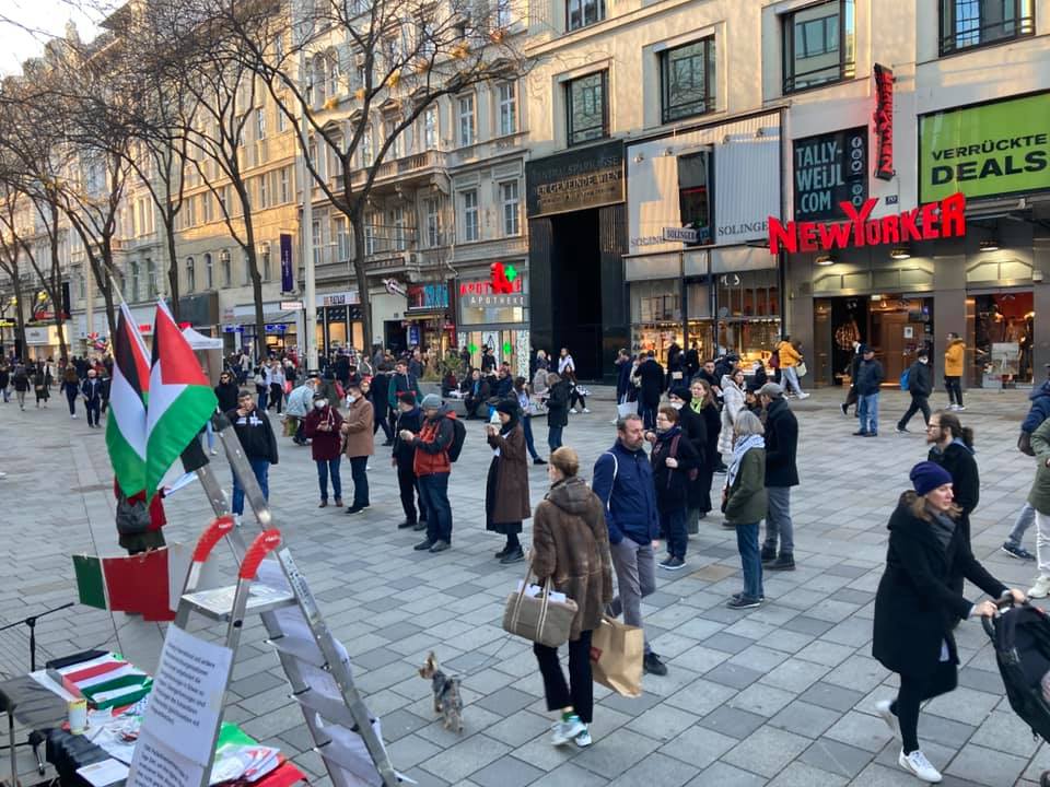 Ungewöhnlich großer Andrang für unsere Petition, endlich die Unterstützung des israelischen Kolonialismus aufzugeben und zur verfassungsmäßigen Neutralität zurückzukehren . Viele der Interessenten hatten an der Massendemonstration vom 12.5.21 gegen das Hissen der israelischen Flagge am Bundeskanzleramt teilgenommen.