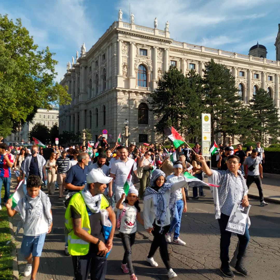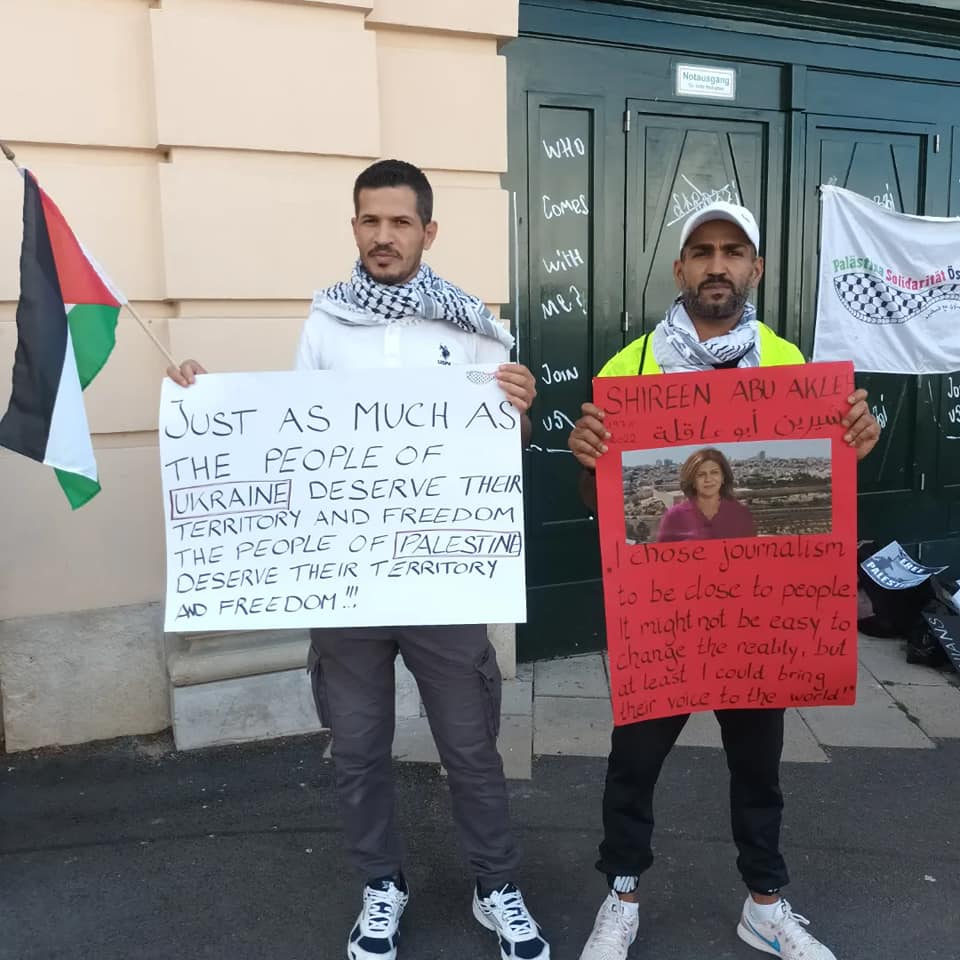 In den Reden wurde die Bedeutung des palästinensischen Widerstandes für die Völker im Kampf um Befreiung weltweit, auf die Notwendigkeit, das Recht der Palästinenser*innen auf ihr Land zu erkämpfen, sowie auf die Forderung an die österreichischen Bundesregierung, endlich die militärischen und sicherheitsbezogenen Kooperationen mit dem Kolonialstaat Israel aufzugeben, thematisiert.