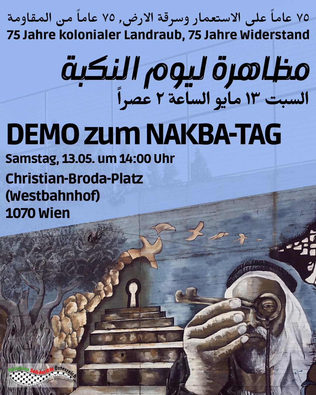 Österreichs Politik ignoriert das an dem palästinensischen Volk begangene Unrecht – mehr noch: sie kooperiert sicherheits- und militärtechnisch und baut diese Zusammenarbeit weiter aus. Aus wirtschaftlichem und politischem Kalkül stellt sie sich hinter jedes israelische Verbrechen und will die palästinensische Stimme zum Schweigen bringen. So wurden 2021 Demonstrationen in Solidarität mit Palästina entgegen dem Recht auf Versammlungsfreiheit verboten. Die österreichische Delegation stimmte auch gegen die Resolution der UN-Generalversammlung vom 30. November 2022 zum Gedenken an den „Tag der Nakba“ – dennoch wird es heuer ein offizielles Gedenken in der UN-Vollversammlung zu diesem Anlass geben.