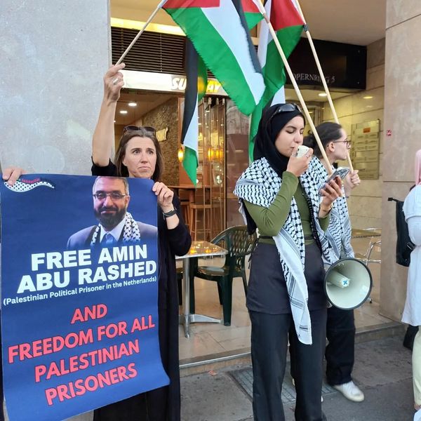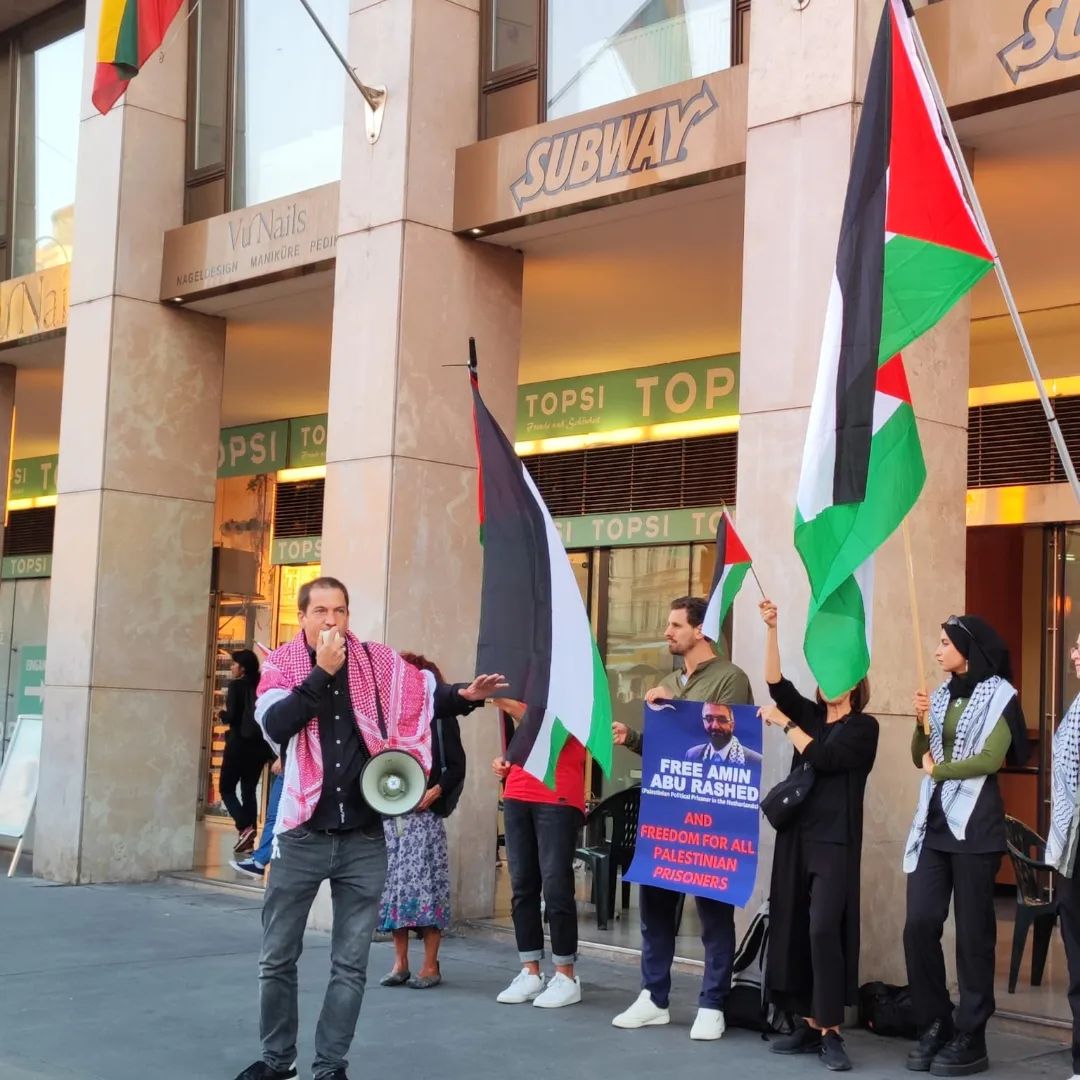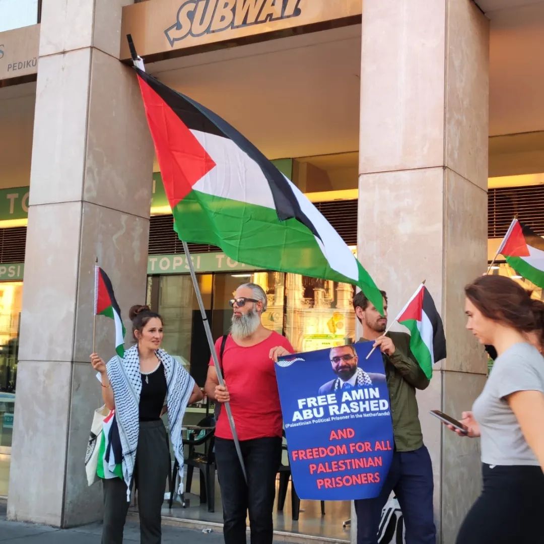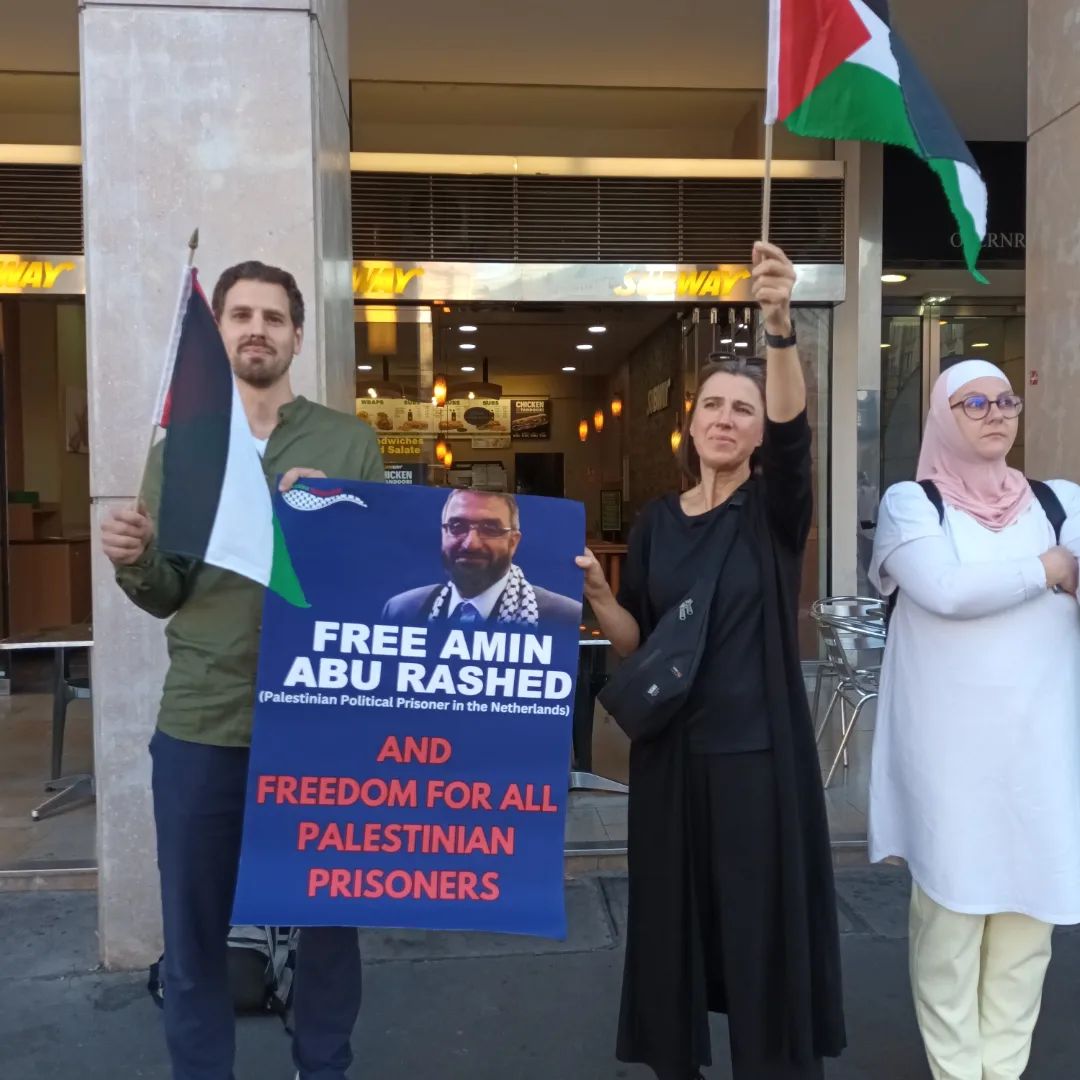 Heute, am 7.9.2023, protestierten wir für die Freilassung von Amin Abu Rashed, ein langjähriger palästinensischer Aktivist und Vorstandsmitglied der Palästinensischen Gemeinschaft in den Niederlanden. Er wurde nach jahrzehntelanger Arbeit in der Community vom niederländischen Staat inhaftiert, die Ermittlungen gegen ihn laufen seit zwei Monaten unter dem Vorwand falscher Anschuldigungen. Seine Familie sagt außerdem, dass er sich in einem kritischen Gesundheitszustand befindet und sofort freigelassen werden sollte.