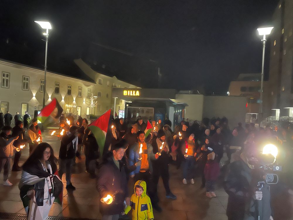 Es sprachen Samih (ein palästinensischer Arzt aus Wiener Neustadt), Walter Höller (der ursprüngliche Anmelder, dessen Demo unter Verletzung der Meinungsfreiheit untersagt wurde), Adrian Kalt (der zweite Anmelder) sowie Imad Garbaya.