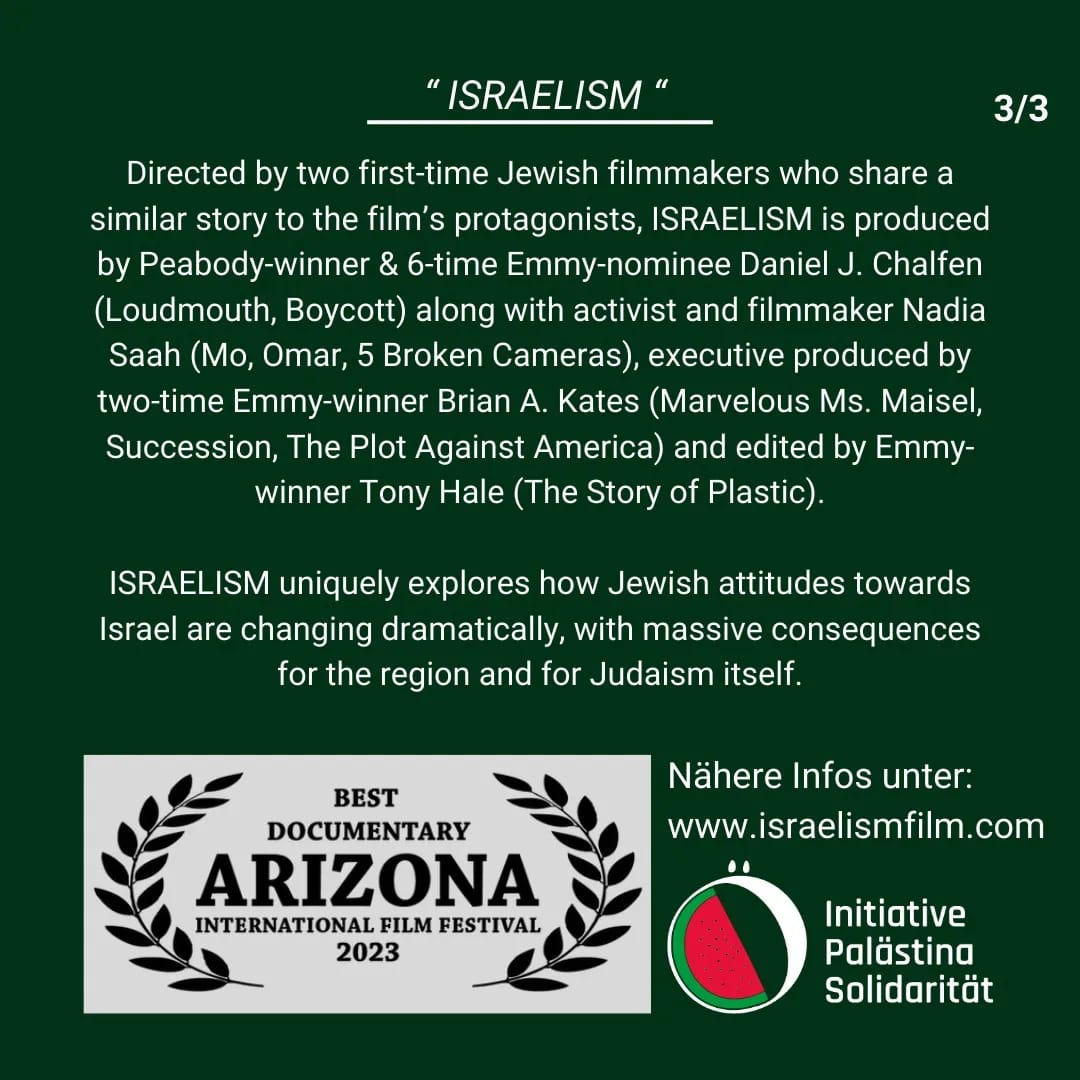 Gezeigt wird der 2023 in den USA erschienene Film "Israelism".