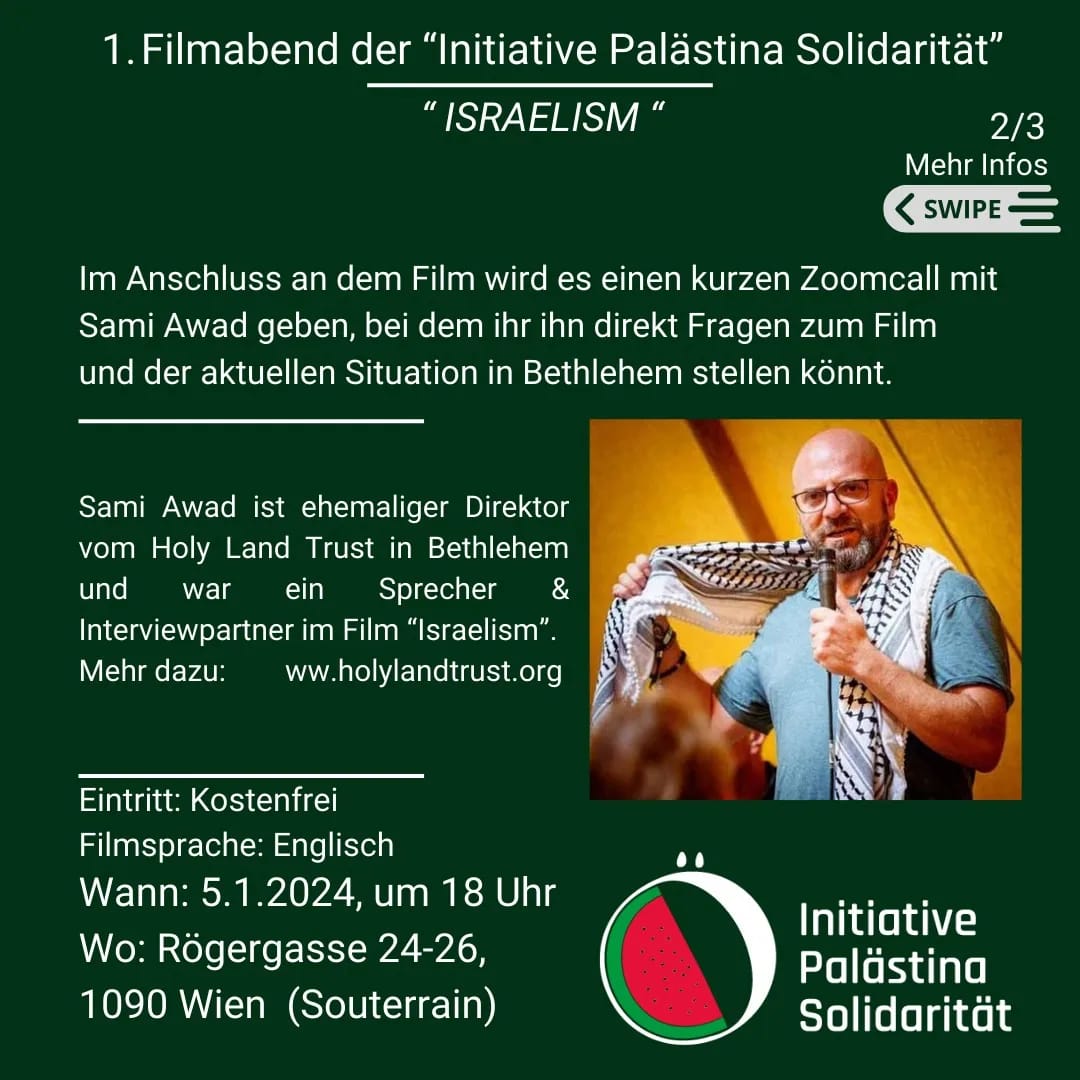 Wir von der "Initiative Palästina Solidarität" laden euch zum Filmabend in der Rögergasse ein.