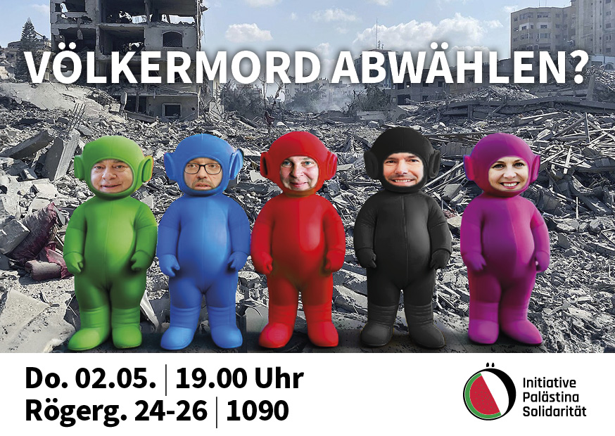 „Na dann wählen wir sie eben ab“ – sagt der Hausverstand. Doch die sogenannten Oppositionsparteien unterscheiden sich nicht wesentlich. Selbst die KPÖ, die seit mehr als einem halben Jahrhundert nicht mehr im Parlament ist, schafft es nicht, sich klar gegen den israelischen Kolonialismus und für gleiche Rechte für alle auszusprechen.