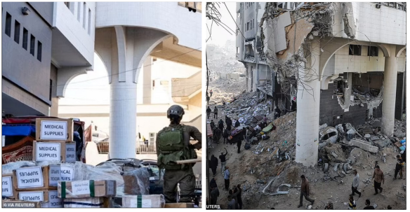 Der Militärsprecher Daniel Hagari räumte zwar die Zerstörung des Krankenhauses ein, machte aber die Hamas für die entstan­dene Zerstörung verantwortlich, da sie sich im Krankenhaus verschanzt, auf Soldaten geschossen und Aufforderungen, sich zu ergeben, abgelehnt hätte:
